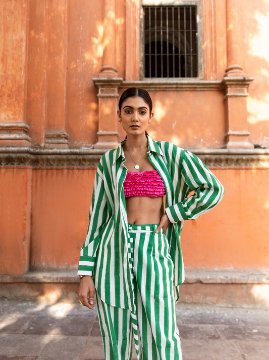 Envy In Green Stripes Co-Ord Set - Striped Cotton Co-Ord Set