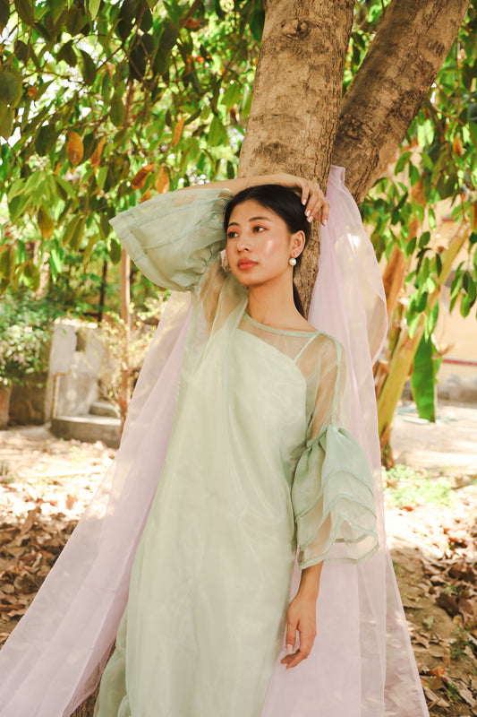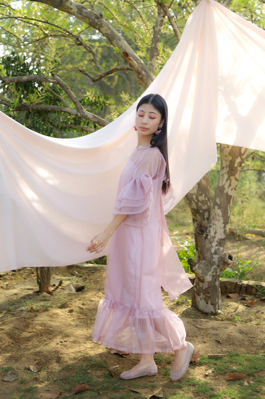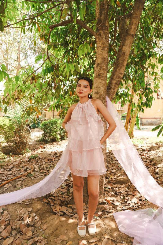 Pêche Dress - Peach Cotton One Shoulder Tier Dress