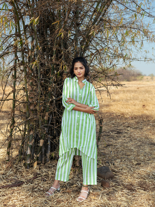 Envy In Green Stripes Co-Ord Set - Striped Cotton Co-Ord Set