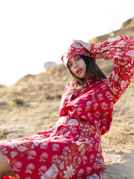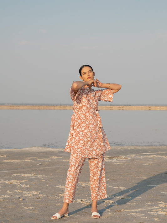 Rust Basile - Rust Hand Block Printed Cotton Kimono Style Co-ord Set