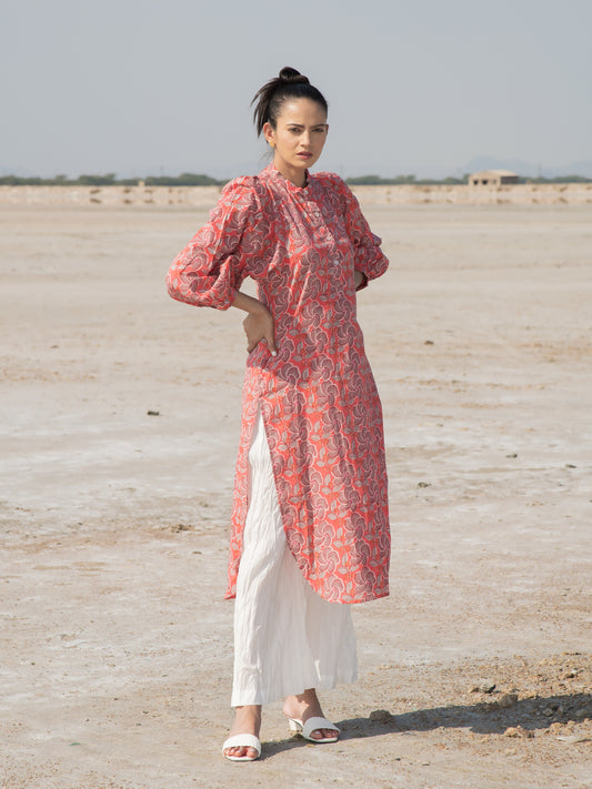 Peach Gardenia Kurta Set - Hand Block Printed Kurta Set