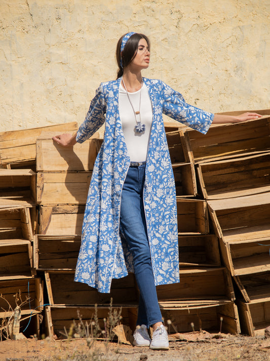 No More Blues Tunic- Blue Hand Block Printed Cotton Tunic Top