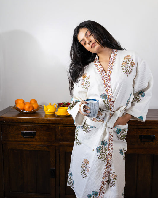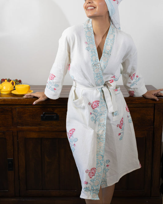 Mughal Garden Luxury Block Printed Cotton Bath Robe
