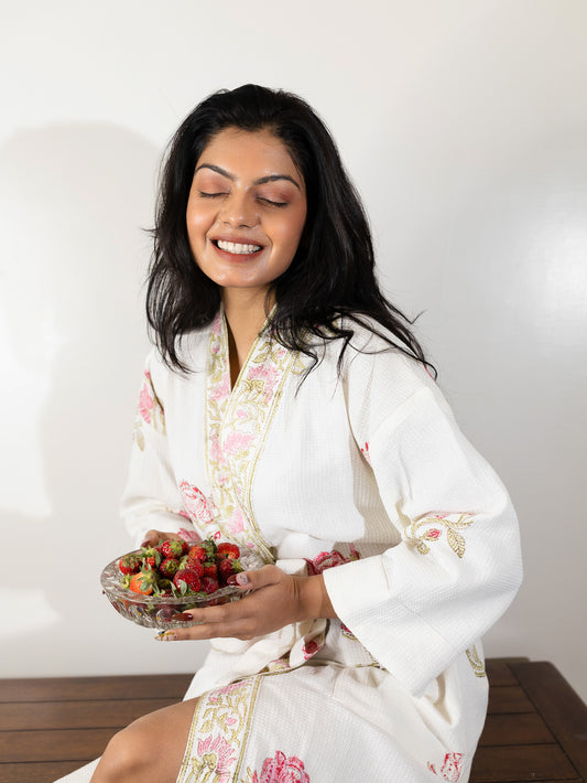 Rose Garden Luxury Block Printed Cotton Bath Robe