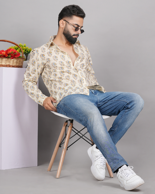 Rose Sunshine Top - Yellow Digital Printed Cotton Silk Blouson Top
