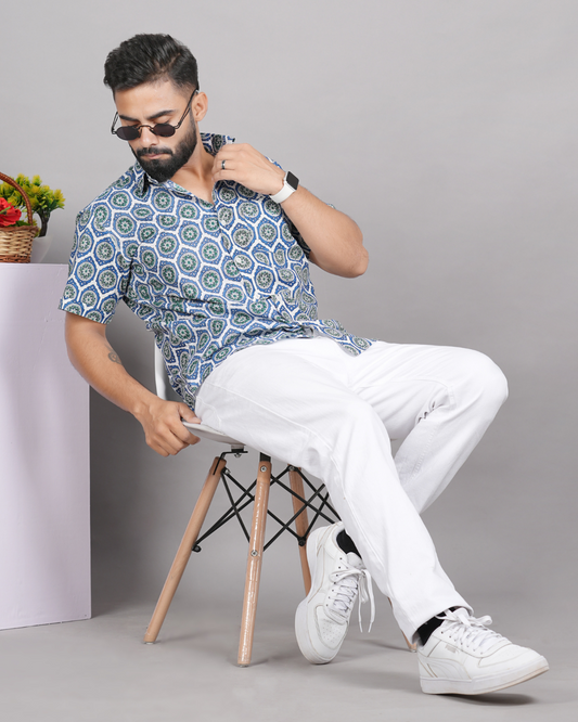 Ocean Blue Luxury Block Printed Cotton Bath Robe